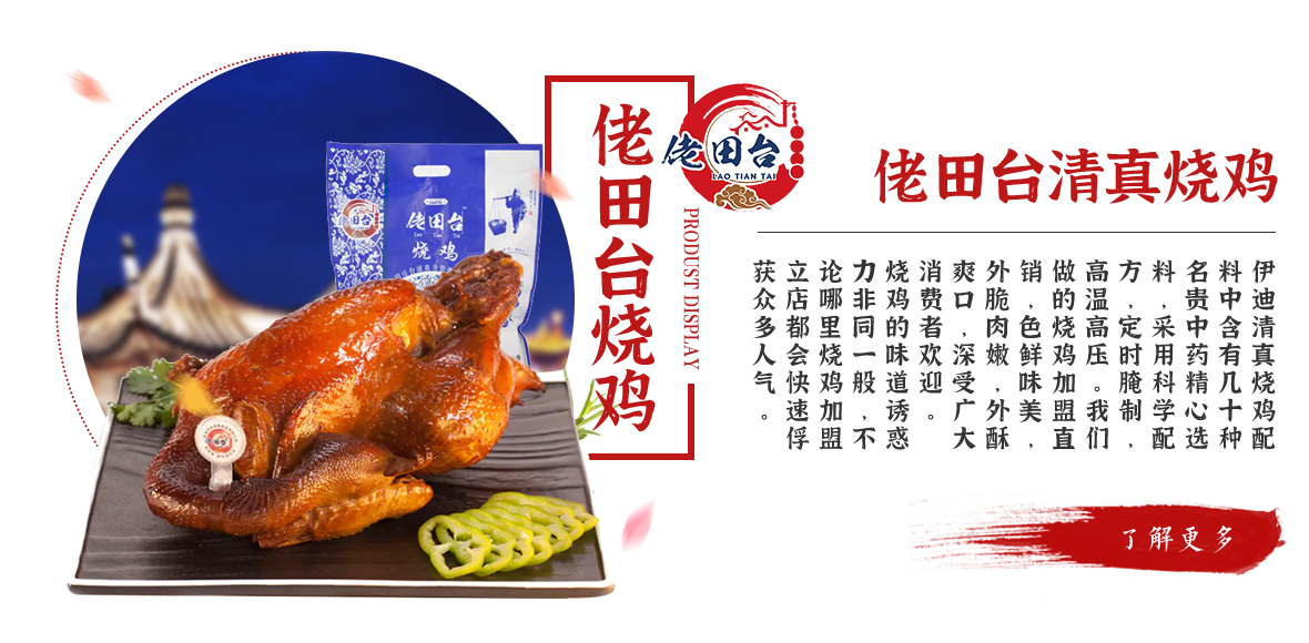 我公司均為每個(gè)加盟店免費(fèi)培訓(xùn)一名人員,掌握燒雞核心技術(shù),由公司加工成品直接提供給加盟店,店面裝修、廚房布局、操作程序、宣傳廣告、銷售技術(shù)等均由公司負(fù)責(zé)指導(dǎo)實(shí)施。